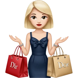 stylish woman with Chanel and Dior bags, iOS 18 emoji style, vibrant and friendly, no text emoji | AI Emoji Generator
