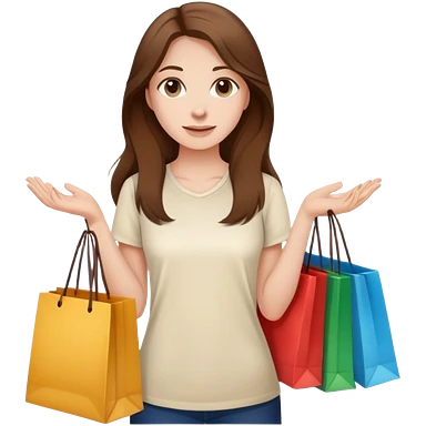 white girl with brown eyes and hair, holding shopping bags like hermes and chanel in short black dress emoji