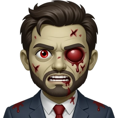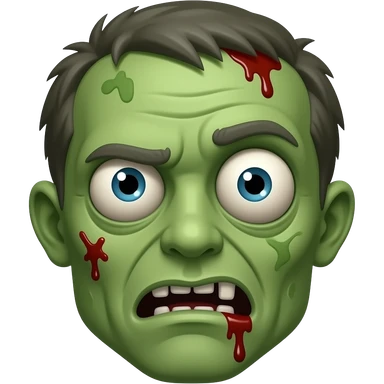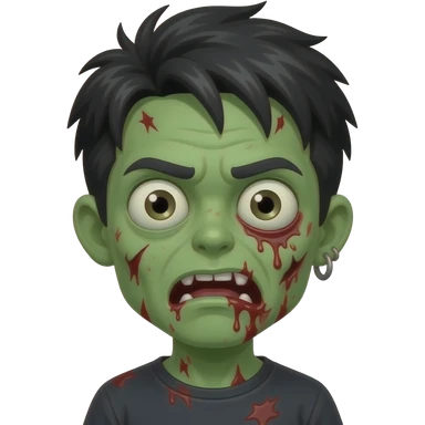 stylized zombie with black short hair, bloody eyes, white t-shirt, blood on mouth, chain, and LA hat, emoji style emoji | AI Emoji Generator