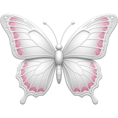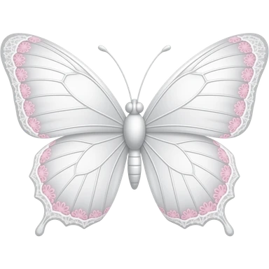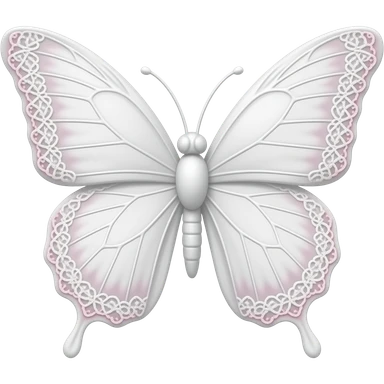 subtle elegant white butterfly, 3D emoji gothic butterfly, white velvet, white filigree, subtle pink white lace trim emoji