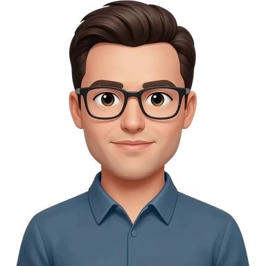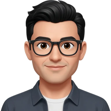 Laki laki ganteng berkacamata. Kulitnya putih, rambut warna hitam depannya emoji