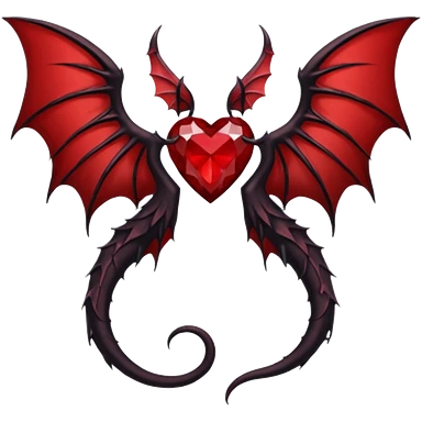 small black succubus wings, cryhstal heart red, succubus tail emoji