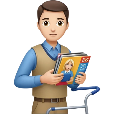 Testemunha de jeová com revista com carrinho de revistas emoji