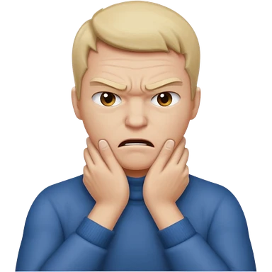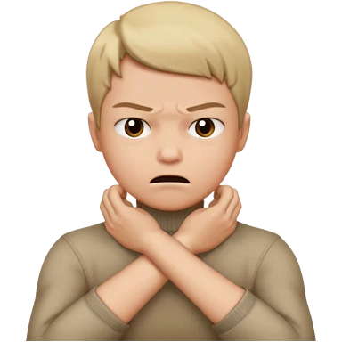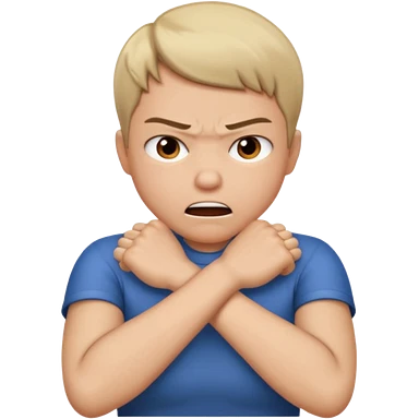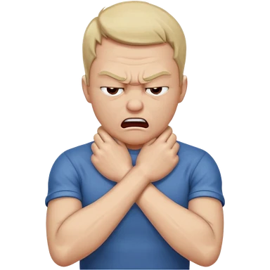 Grabbing throat with hands and looking angry with arms crossed and under chin, grabbing neck emoji