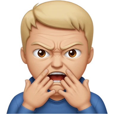 Grabbing throat with hands and looking angry with arms crossed and under chin emoji