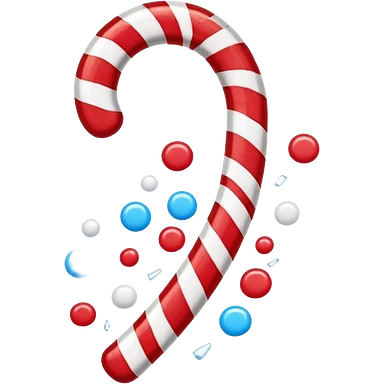 Broken Candy Cane: Cane snapped in half with sugar pieces falling. emoji