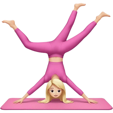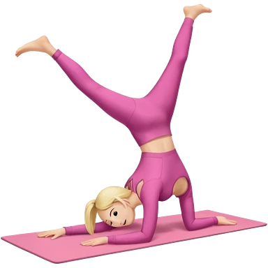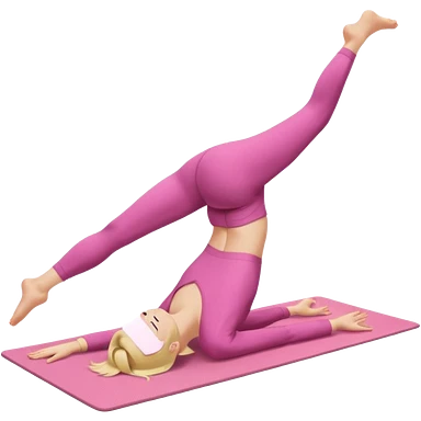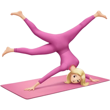 A fair-haired girl in a pink suit does a back bridge on a mat emoji