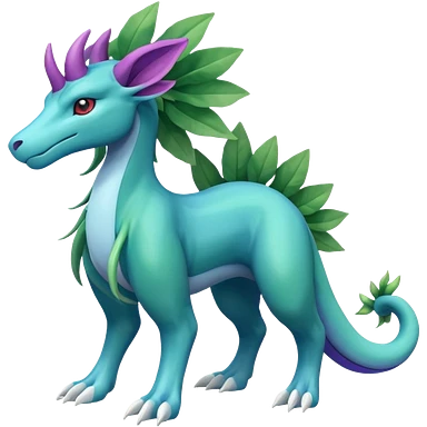 Suicune-Aurorus-Salandit-Salamence-Glaceon-Meganium-fusion (full body) emoji | AI Emoji Generator