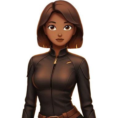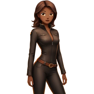 Female silhouette in tight leather, backlit by firelight, slow controlled posture emoji
