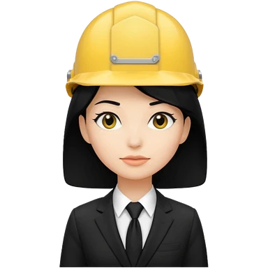 black suit black tie with yellow helmet ''black hair'' woman emoji