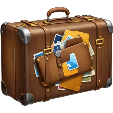 suitcase with compartments holding symbols for CRM, task lists, chat bubbles, and document files, clean modern emoji style emoji