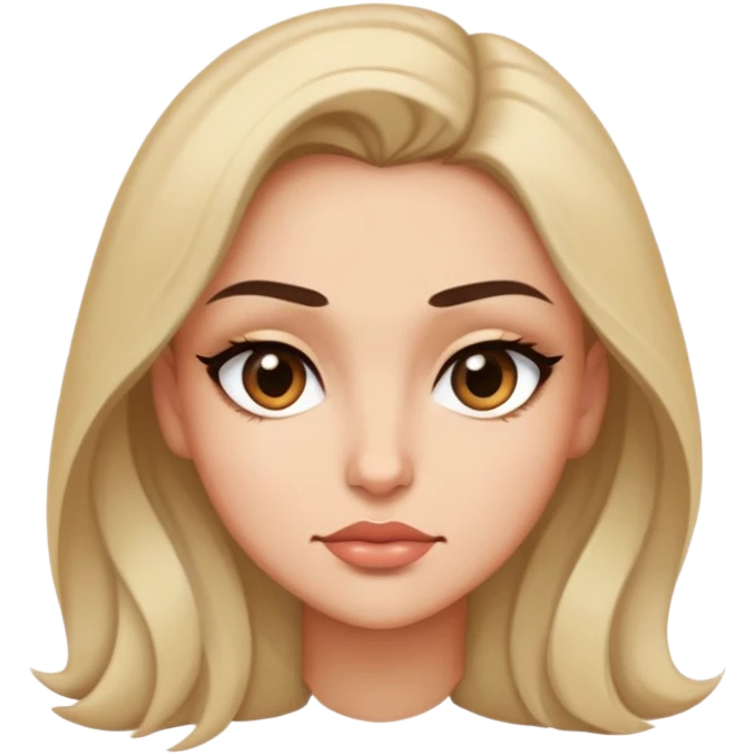 white skin, high cheekbone, brown hair girl with blue eyes, medium bust, long blow-out hair, baddie, middle part, sultry emoji