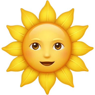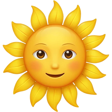 A smiling sun emoji, bright yellow with rays, simple and cheerful. emoji