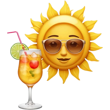 A pink cat wearing fancy sunglasses and having a fancy drink emoji