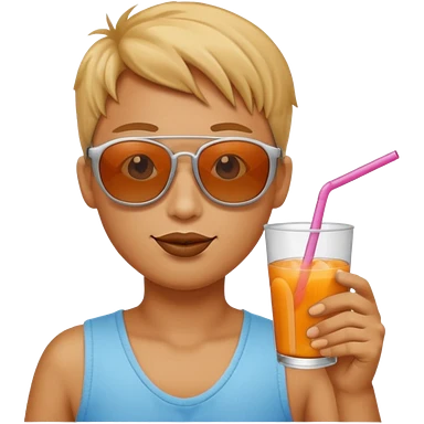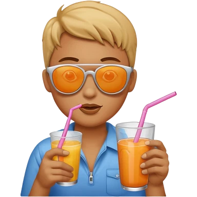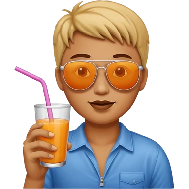 Sun is wearing sunglasses and drinking juice with stra emoji