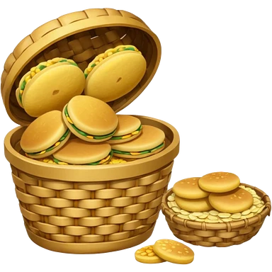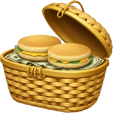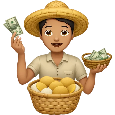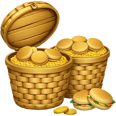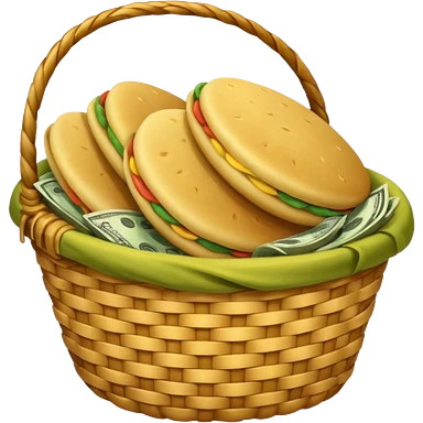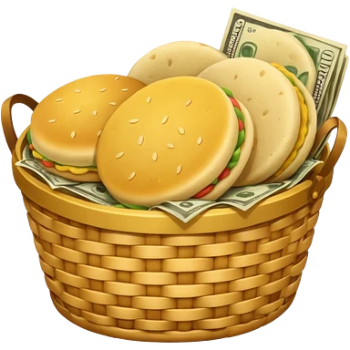 two baskets, one filled with money, another with colombian arepas emoji