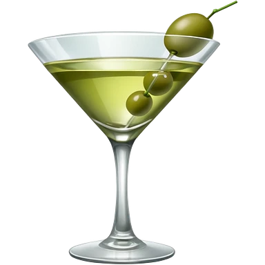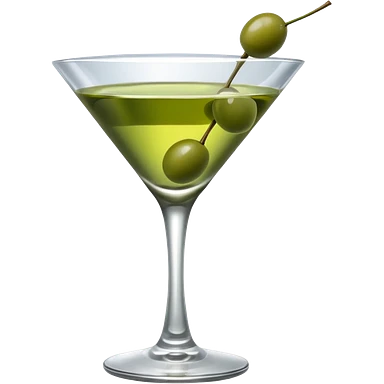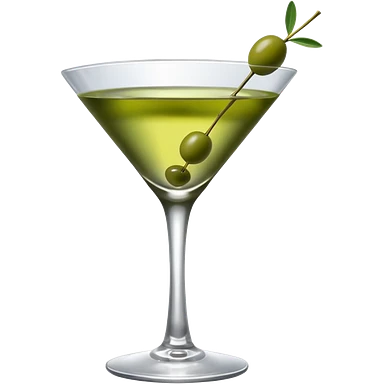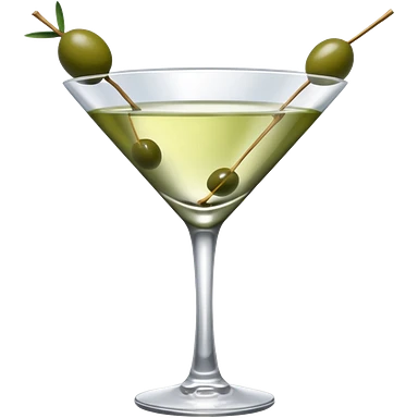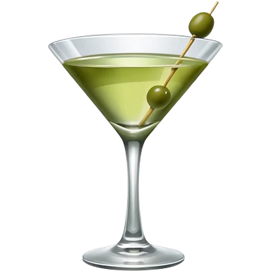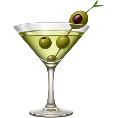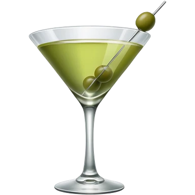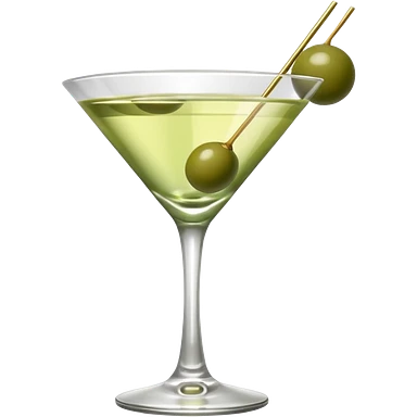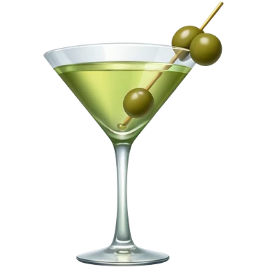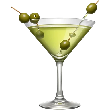 martini with 3 green khaki olives all at the same stick and same size . liquid should be a clear color. emoji