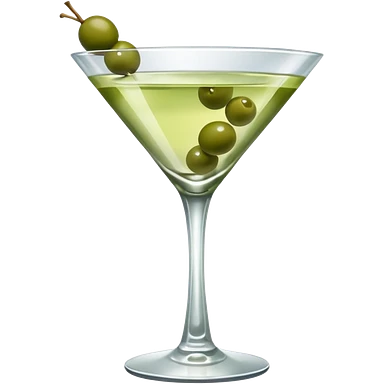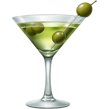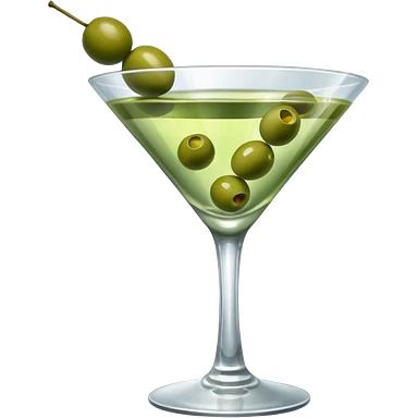 martini glass with 3 olives. no straw, just 1 stick that the olives will be stuck on. olives should have the same size. no leaves at all. liquid should be more white/clear than green emoji