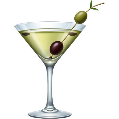 martini glass with 3 olives. no straw, just 1 stick that the olives will be stuck on. olives should have the same size. no leaves at all. liquid should be more white/clear than greek emoji