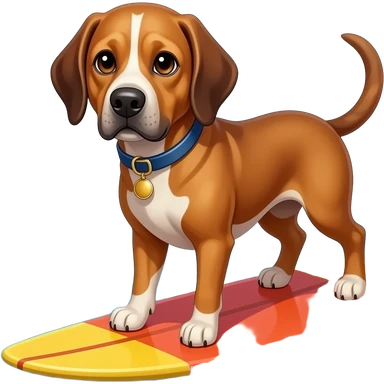 Podenco joung adult sitting sphinx like on sup in front front of the paddler on sea emoji