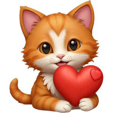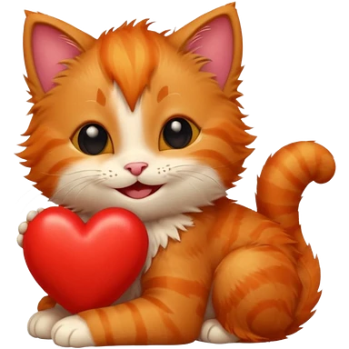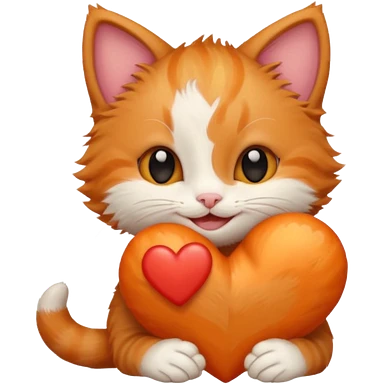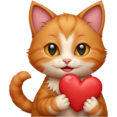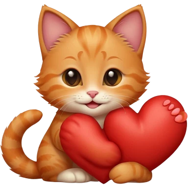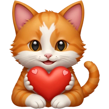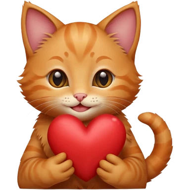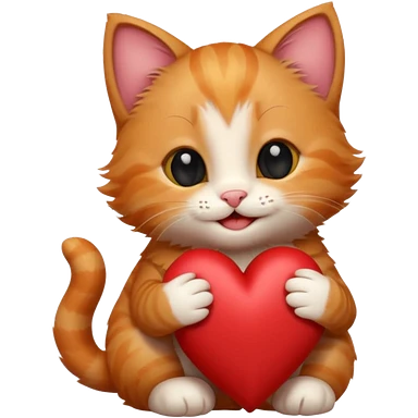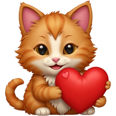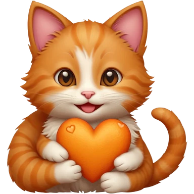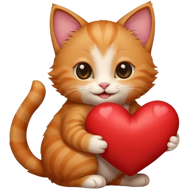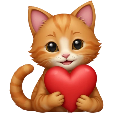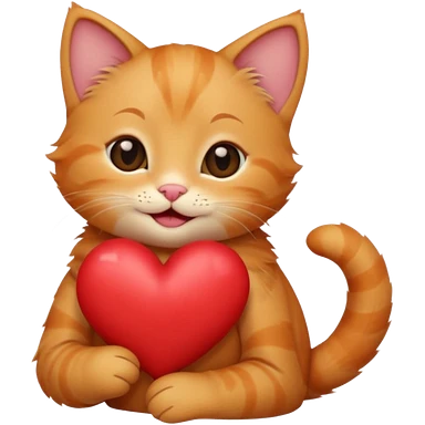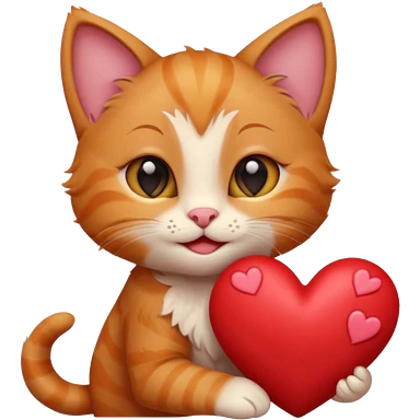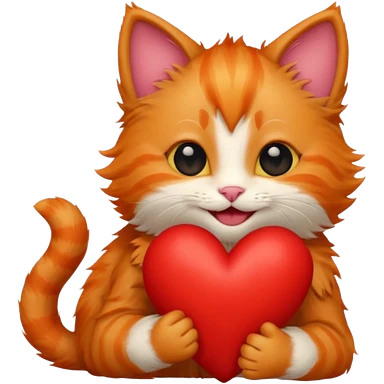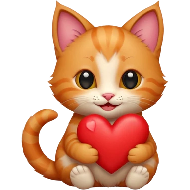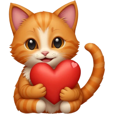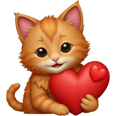 The ginger kitten is hugging a heart, very happy and smiling, he has a very beautiful face. emoji