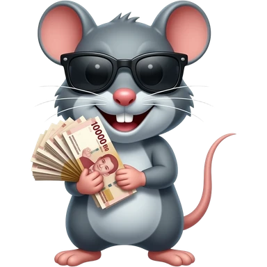An angry smiling rat wearing a sunglasses grab a bunch of indonesia's money, the price is 100.000 emoji