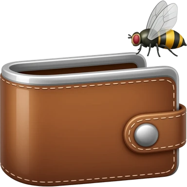 Dompet kulit kosong dengan lalat yang terbang kluar dari dalamnya emoji