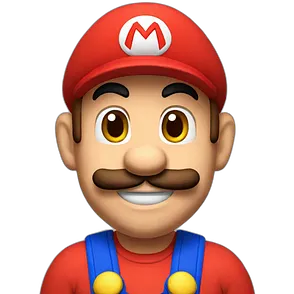 Super Mario character with red cap and blue overalls emoji | AI Emoji Generator