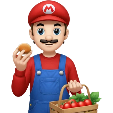 Super Mario che fa la spesa e si mangia un fungo emoji | AI Emoji Generator