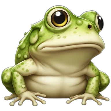 Cinematic Comical Toad Portrait Emoji, Head tilted dramatically with an exaggeratedly amused expression, featuring a robust, bumpy body with wide, comically expressive eyes full of playful disbelief and a quirky, textured face, Simplified yet hilariously expressive features, highly detailed, glowing with a slightly sassy woodland glow, high shine, dramatic yet playful, stylized with an air of quirky amphibian mischief, soft glowing outline, capturing the essence of a meme-worthy toad that looks ready to side-eye its way into viral fame! emoji