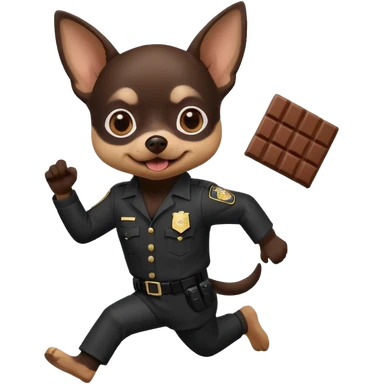 black chihuahua with white and black prison suit running from police with chocolate in its mouth emoji