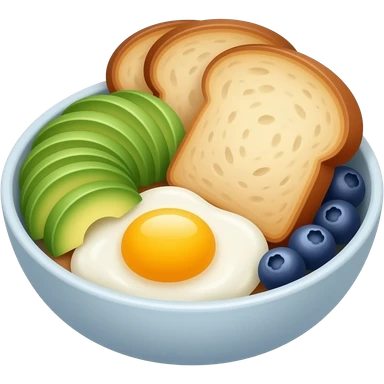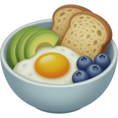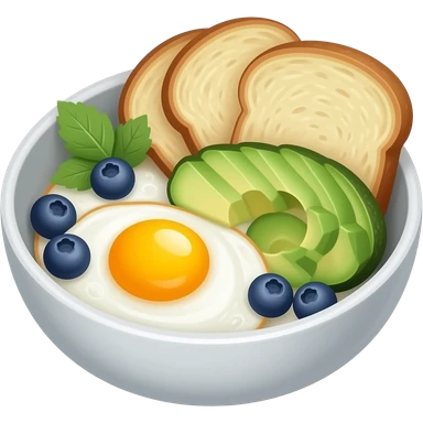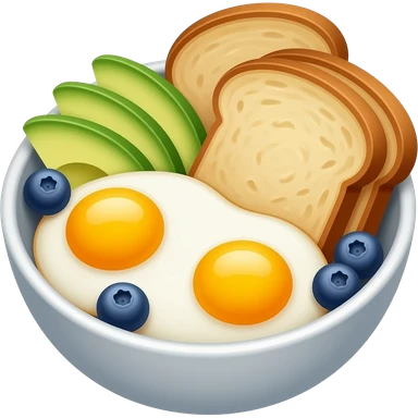 bowl with sunny side eggs avocado blueberries sourdough emoji