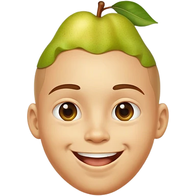 Make an image of a boy with a pear for a head with a super big smile emoji