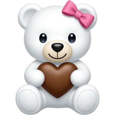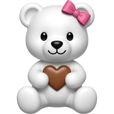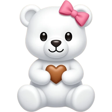 Osito blanco con un corazoncito cafe ente sus manos y un moño rosa en su cabeza pequeño emoji