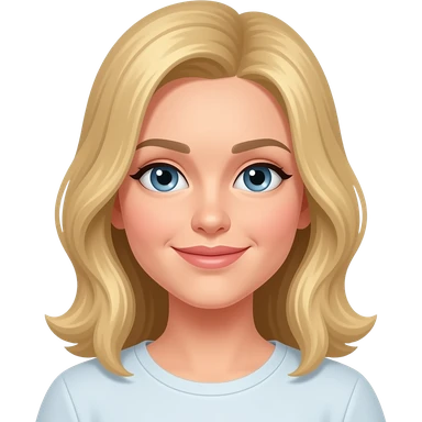 Mujer 60 años pelo rubio y pixie ojos azules cara redonda emoji