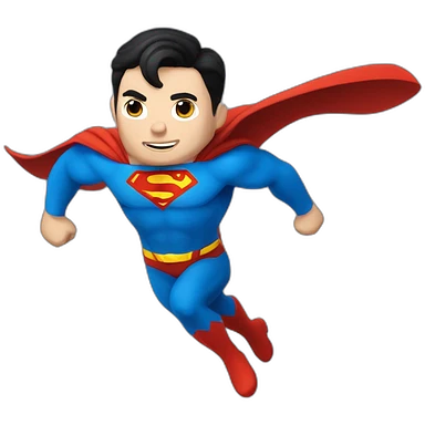 superman volando, ojos azules, pelo rubio, estilo Pixar emoji