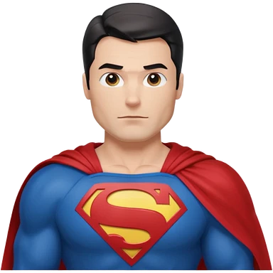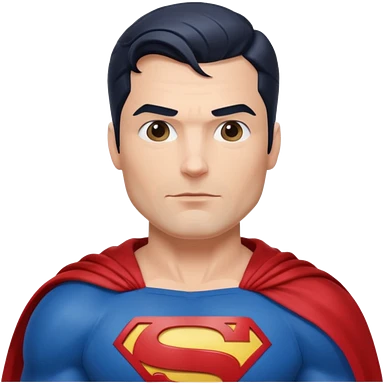 Highly detailed, hyper-realistic emoji of Superman. He wears his classic blue suit with a red cape and ‘S’ emblem on his chest. His expression is confident, and his hair features the signature curl. Minimalist background for focus. emoji