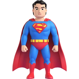 ultra-realistic 3D emoji of Superman, heroic and energetic, flying through a dramatic sky, blue suit, red cape, glowing yellow 'S', muscular build, chiseled jaw, signature black hair curl, sunlight beaming, vibrant colors, shiny and crisp emoji