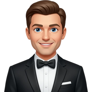 Pretty Pale Boy with Blue eyes, shiny brown hair and wearing Tuxedo with red bowties emoji