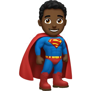 Superman with brown hair, a beard, and glasses on. Eyes are green. Happy face emoji