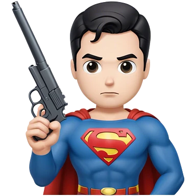 Superman with brown hair, a beard, and glasses on. Eyes are green. Angry face emoji