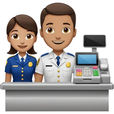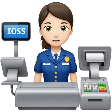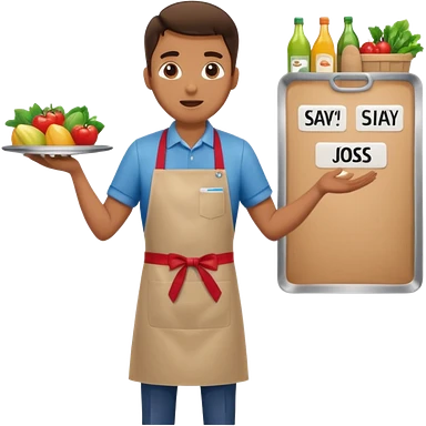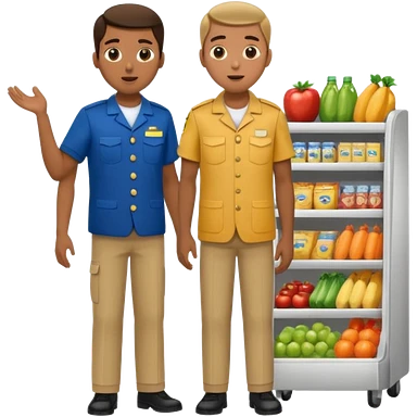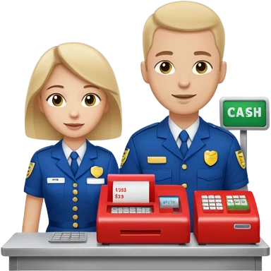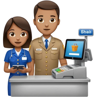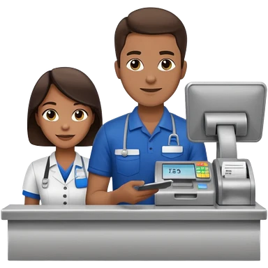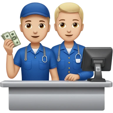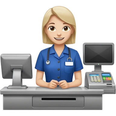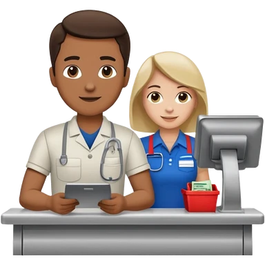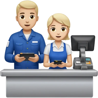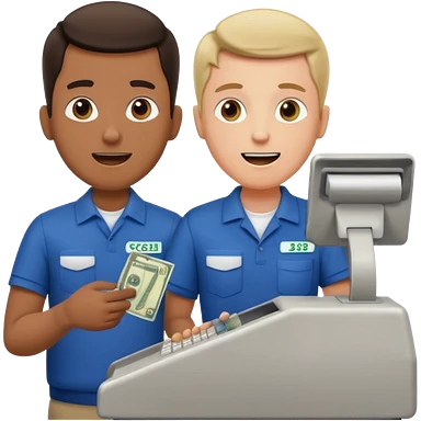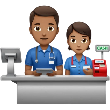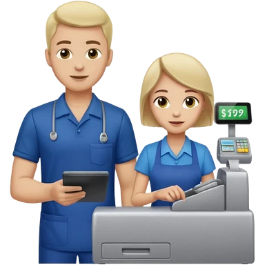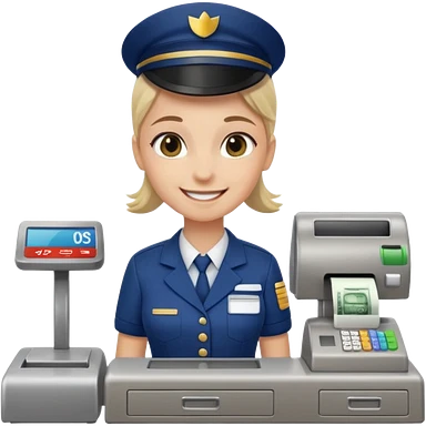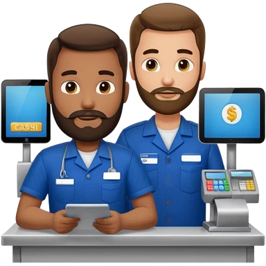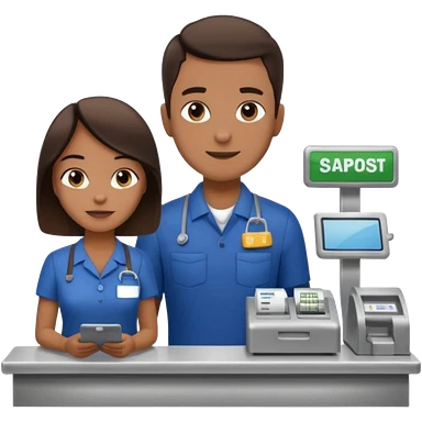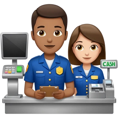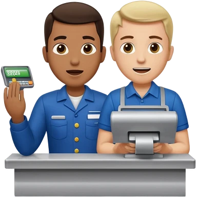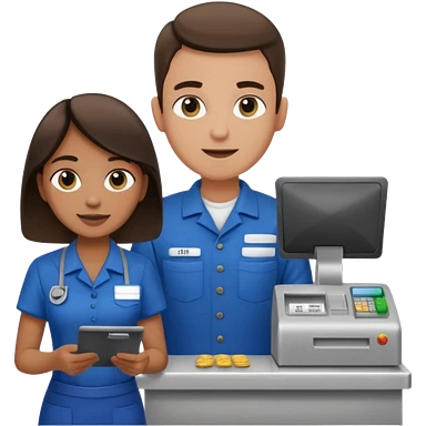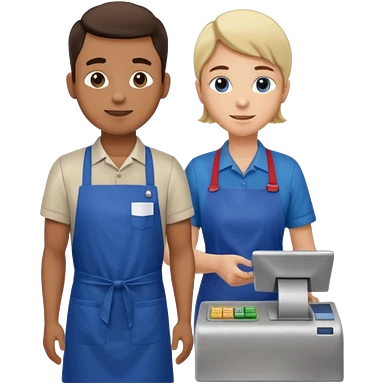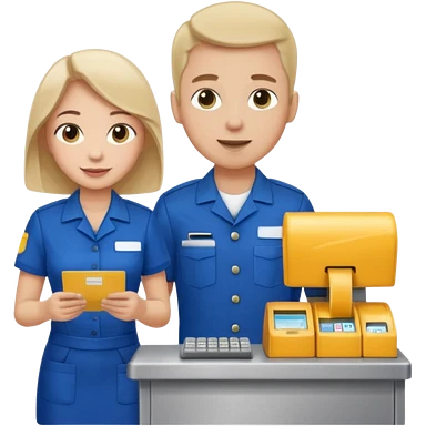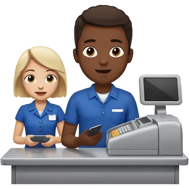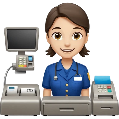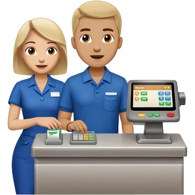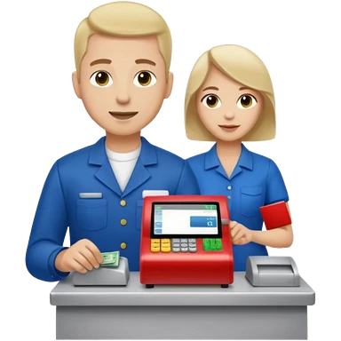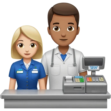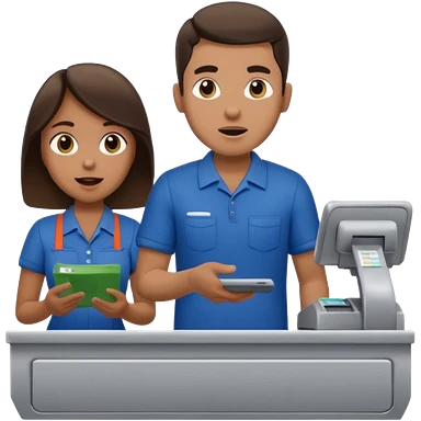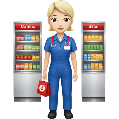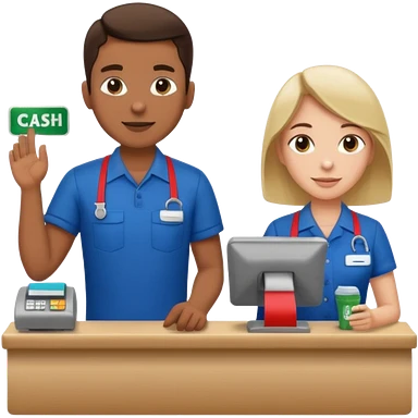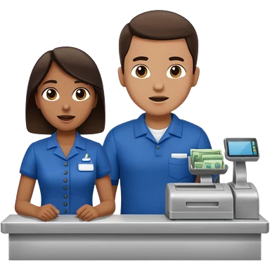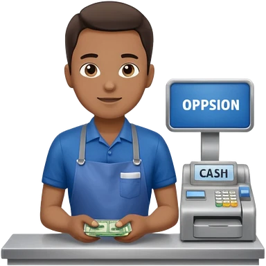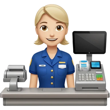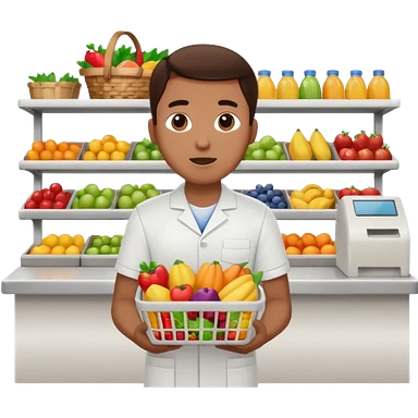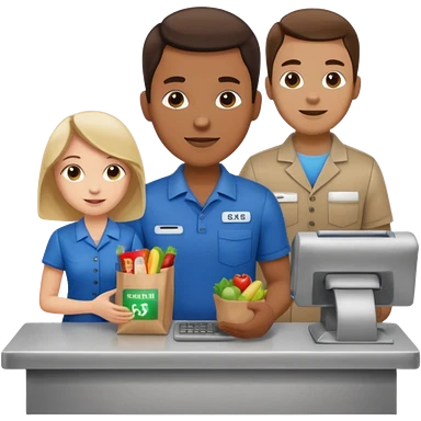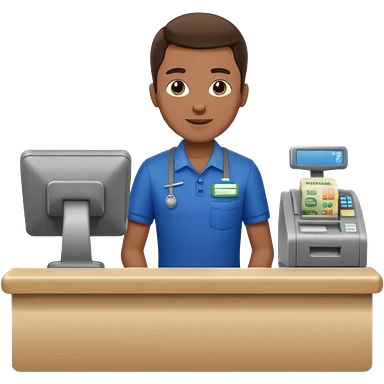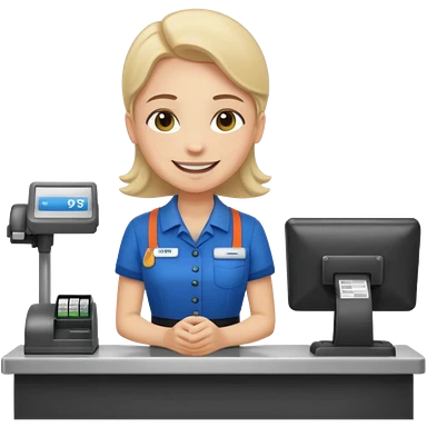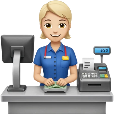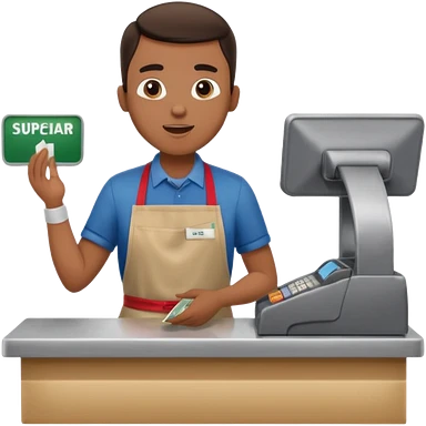Supermarket employee at a cash register, full body, serving a man emoji