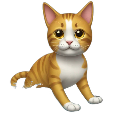 Tortoiseshell  cat riding a surf board on a monster wave emoji