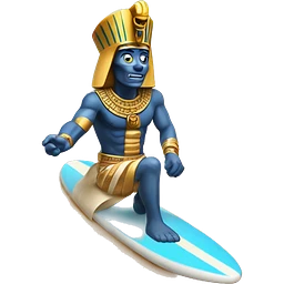 Capybara riding a dinosaur on a surfboard in the ocean emoji