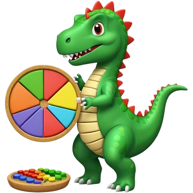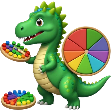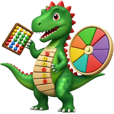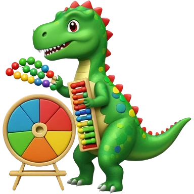 cheerful dino wearing safety goggles, holding a DNA strand and a flask, emoji style emoji
