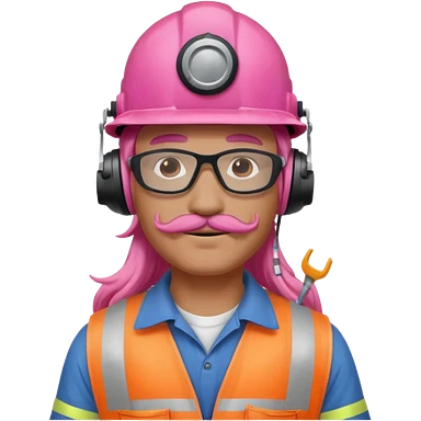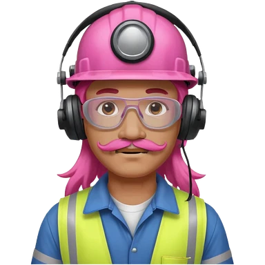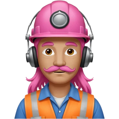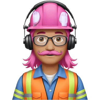 construction worker with long pink hair and ppe headphones and mustache emoji