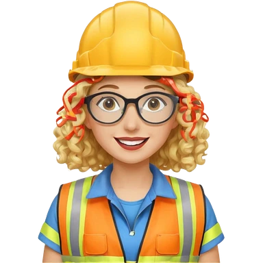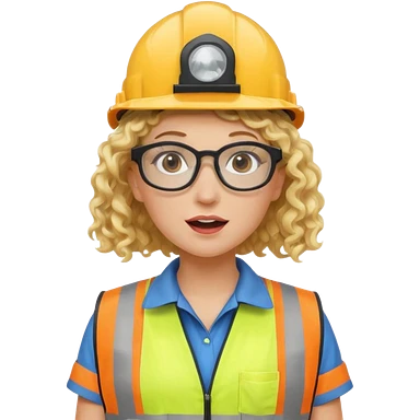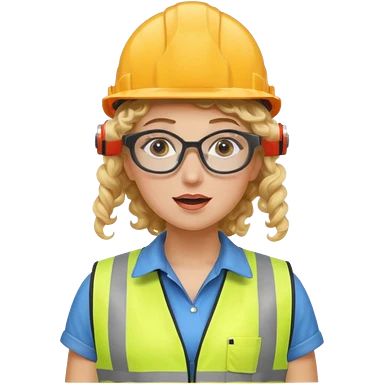 surprised construction worker blond curly haired woman wearing ppe emoji