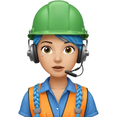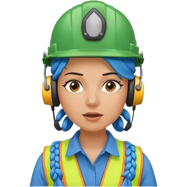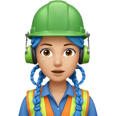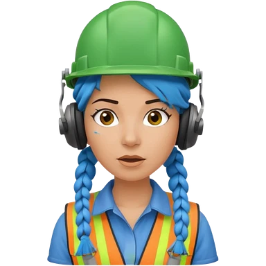 surprised construction worker blue braided haired woman wearing green helmet and headphones emoji