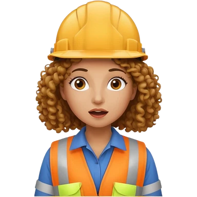 surprised construction worker curly haired woman wearing ppe emoji