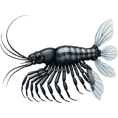 five dried shrimp, curled, visible texture, legs, antennae, dry translucent surface, pale orange to light reddish-brown, sun-dried, no bowl, packaging, or faces, clean 3D, soft lighting, transparent background, emoji scale emoji